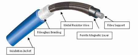The fibreglass strand core is covered by a layer of ferrite magnetic material wound with variable-pitched stainless steel wire. The outer jacket offers excellent insulation and heat resistance made from either;