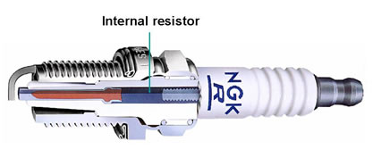 Resistor type spark plug’s incorporate an internal resistor to suppress ignition noise generated during sparking. The ignition noise which is often known as either electromagnetic interference